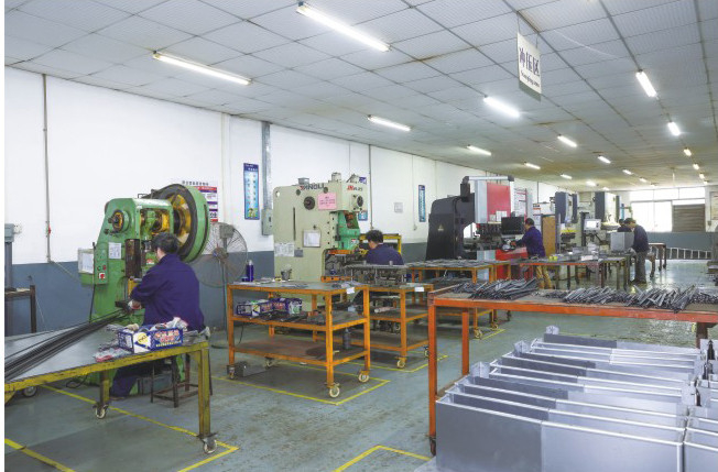 厂房面积8000m²,拥有10个焊工组、进口激光设备2台、数控折弯设备3台、自动抛光机、防护罩风琴生产线2条、静电喷涂线1条等齐全的防护罩生产设备。